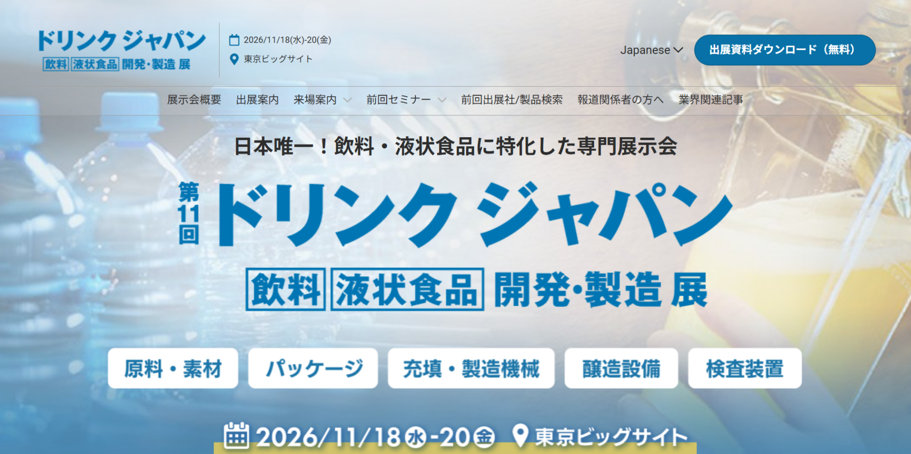 飲料・液状食品の研究・開発から製造までを扱う、日本最大級のBtoB展示会です。