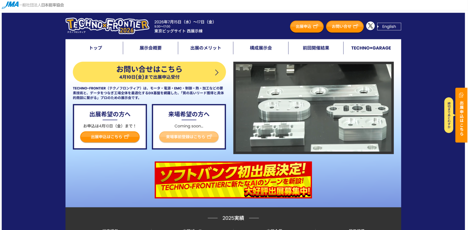 メカトロテックジャパン(MECT)は、中部圏最大級の工作機械とメカトロニクス技術の専門展示会で、2年に1度開催されます。自動車・航空・精密機器など中部地域の主要産業に向けた最新技術や装置が集結し、多くの技術者や購買担当者が来場します。