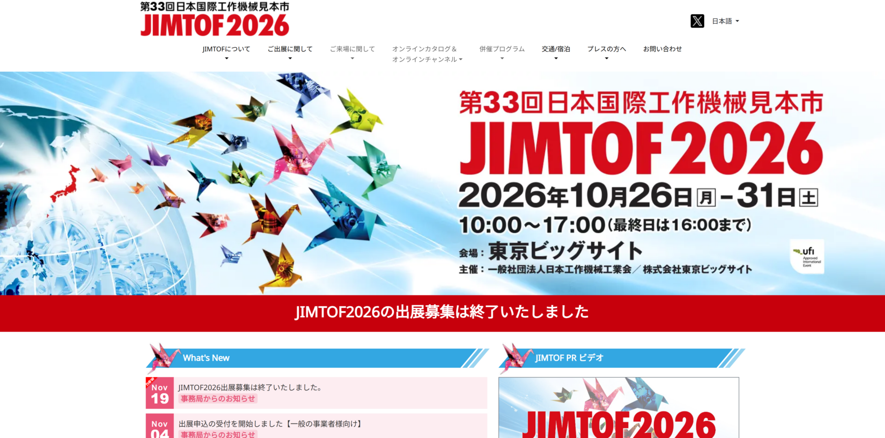 JIMTOF(日本国際工作機械見本市)は、日本最大かつ世界有数の工作機械専門の展示会で、2年に1度開催されます。工作機械、切削工具、精密測定機器、周辺装置など、最先端の加工技術が集結。